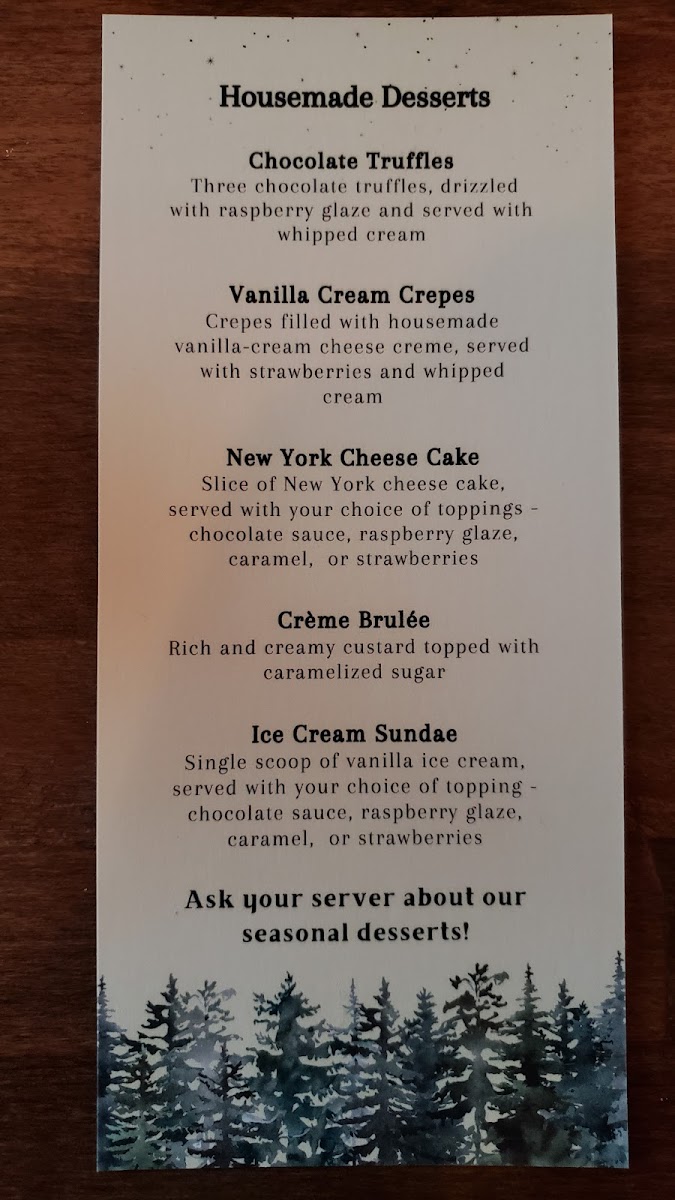 For seafood lovers, the Canadian Lobster Tails and Blackened Scallops promise a taste of the sea that is rich and satisfying. Don’t forget to save room for dessert—a bite of Creme Brulee or Chocolate Truffles is the perfect way to conclude your experience. With exceptional service and a warm atmosphere, Norwood Pines Supper Club is your go-to destination for memorable dining.